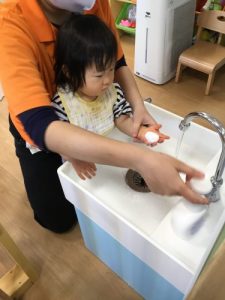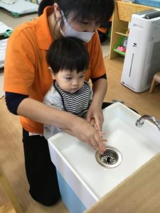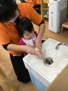 おやつ前、散歩の後、給食の前など必ず行う手洗い!!