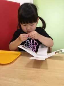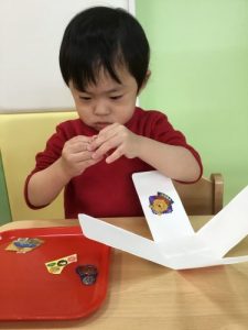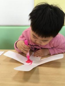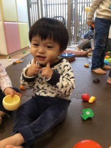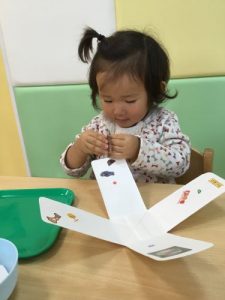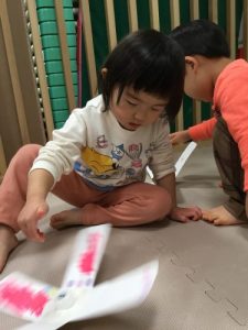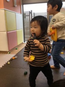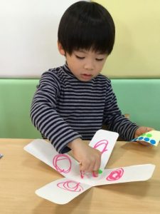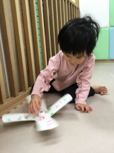 そして、いちご組さんとりんご組さんはコマも作って遊びましたよ![]()