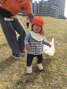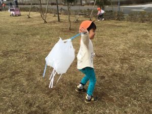 寒さもへっちゃらで、笑顔で凧揚げを楽しんでいた子どもたち。