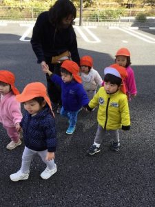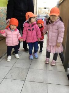来年度に向けてもも組さんといちご組さんで手を繋いで歩いています?![]()