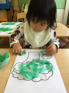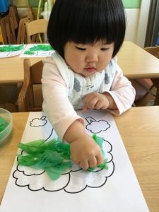 もも組さんは花紙でブロッコリーを作りました![]()