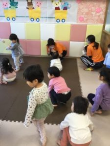 曲が止まったら座るという動きを楽しんだりしています?