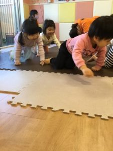 4月からの新しい生活に向けて、りんご組は今週もそらまめ保育園のお友達と一緒に遊びました?