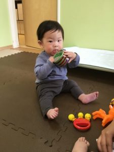お母様、お父様とバイバイした後は、少し涙を流してしまう子もいましたが、歌をうたったり、おもちゃを手にすると笑顔を見せてくれることもありました![]()