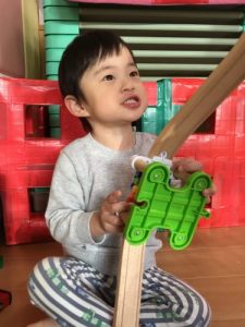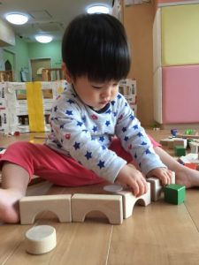 積み木のトンネルを並べたりして遊んでるよ!