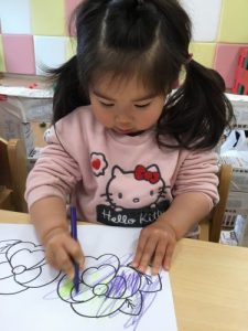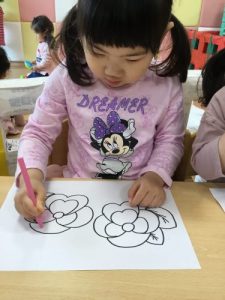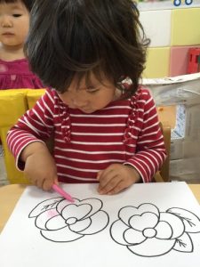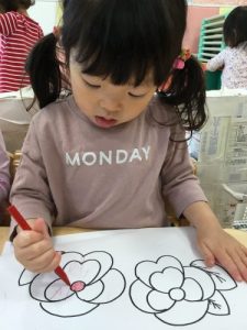 りんご組は園の前で咲いているパンジーの塗り絵です♪