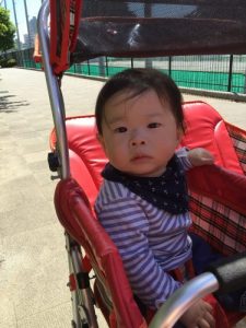 お外が大好きなみんなは、カートに乗ると手や足を動かして喜びを表現しています![]()