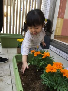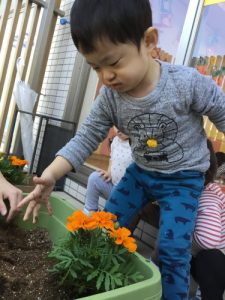 りんご組は先日マリーゴールド、トマト、ナスを植えました???
