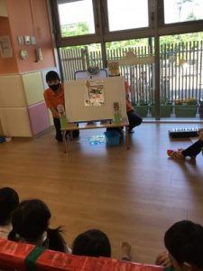 こいのぼりくんが登場するペープサートでは、本物の柏餅が登場✨