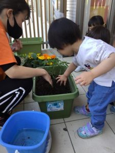 お砂が苦手だったお友だちも頑張って植えていましたよ✨