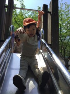 「さくら公園ってどこ?」って言いながら歩いていたのですが、公園についた瞬間、大きな滑り台に大興奮でした