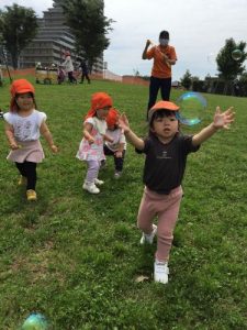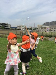 公園に行くと、みんなで追いかけたり、割ったりして楽しんでいます![]()