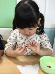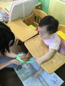 絵の具を見せると、「これは何?」と興味津々な様子の子どもたち![]()