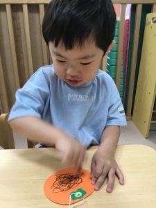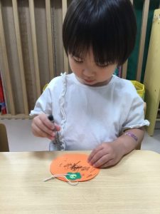 みかんの皮のようにクレヨンで模様をつけました?