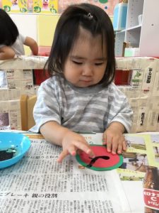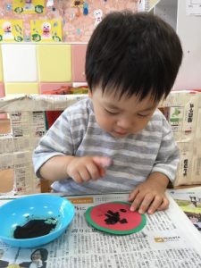 すいかに指スタンプで種をつけました?