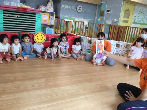 初めてでしたが絵本を読むと、笑顔になっているお友だちが多かったです![]()