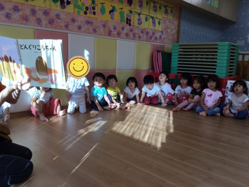 読み終わると、「みんなでひろったね」とニコニコお話しする子どもたちでした![]()