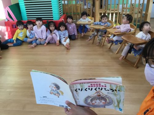 味覚狩りの後には、「くりくりくりひろい」というお話を読むと、「今日拾ったね」や、「みんなでしたね」など嬉しそうに話しながら見ていました?
