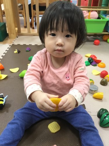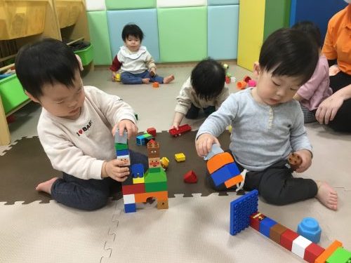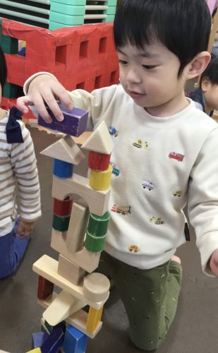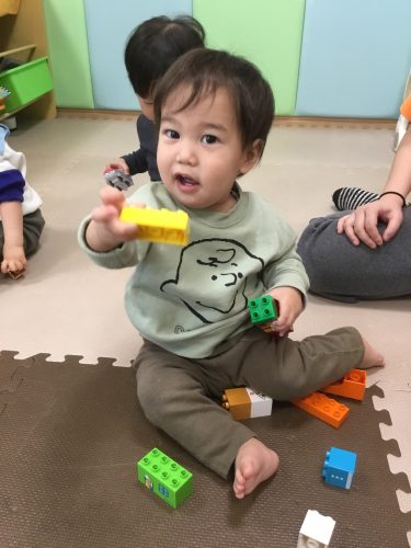 大好きなアンパンマンブロックで夢中に遊んでいます!