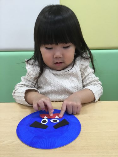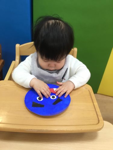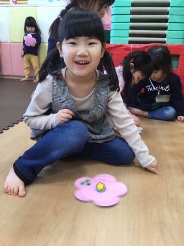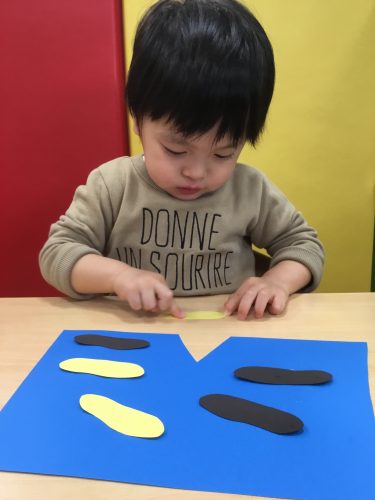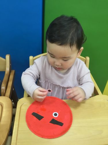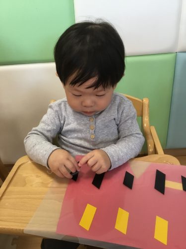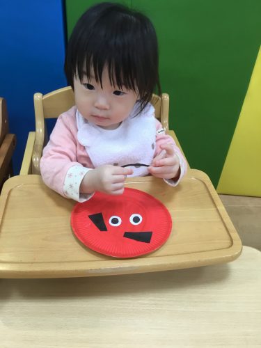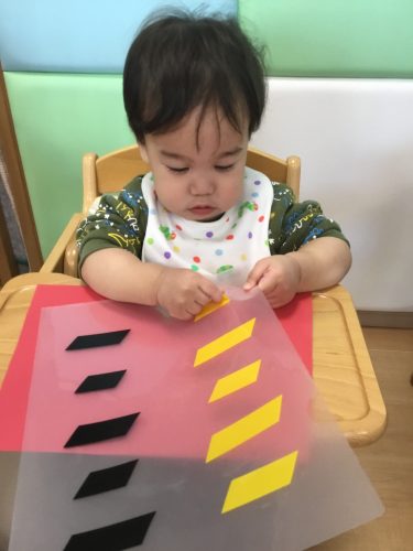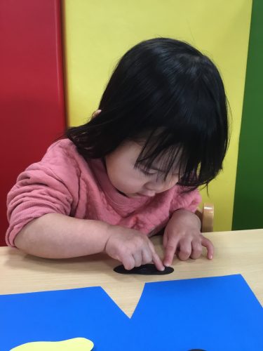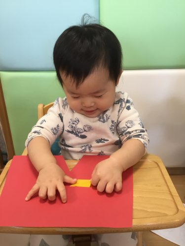 もも組さんは、保育者と一緒にペッタンしていました!