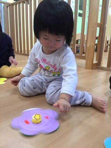 自分で作ったコマがクルクル回ると、大喜びでした![]()