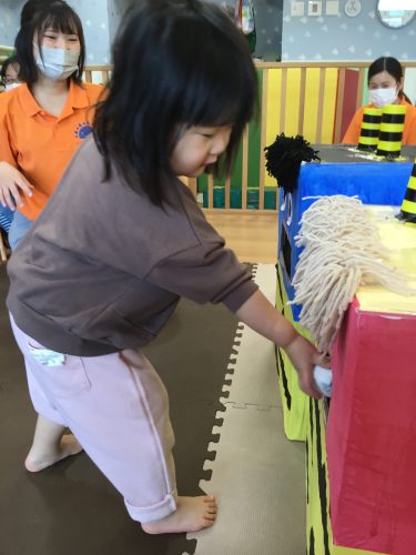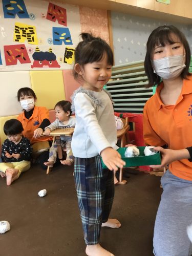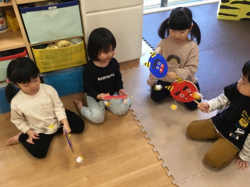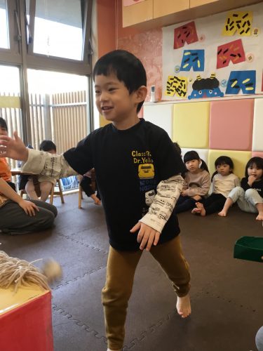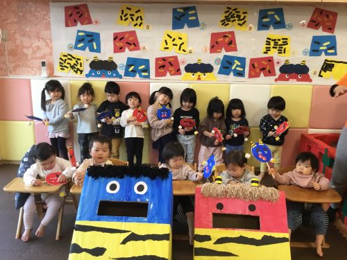 自分の中にいる「泣き虫鬼」や、「怒りん坊鬼」など様々な鬼を追い出してしまおう?と伝えると、『自分にはどんな鬼がいるかな…』と考えていました