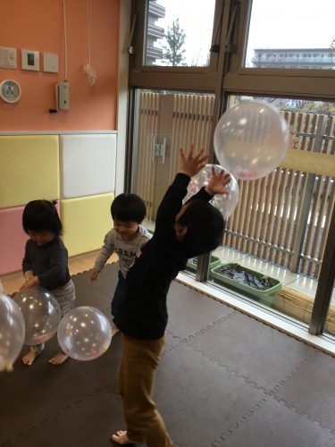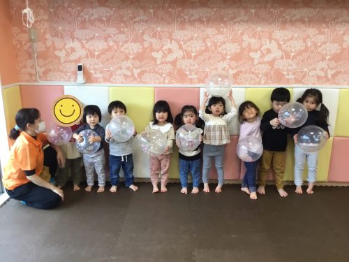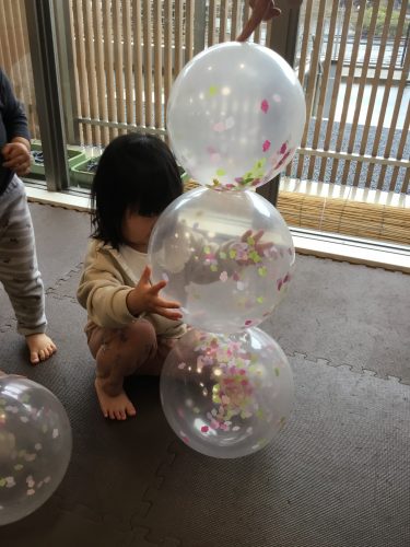 もも組はカラフルな風船で遊びました?