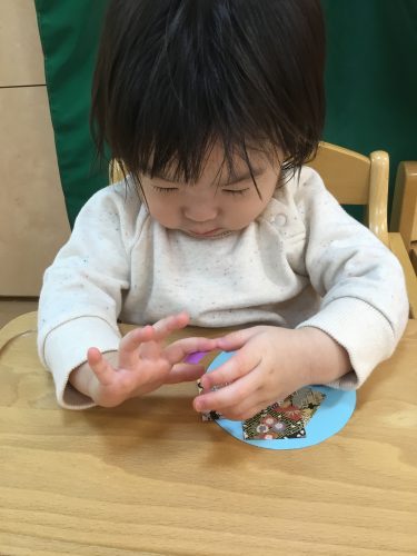 「指にくっついた!」