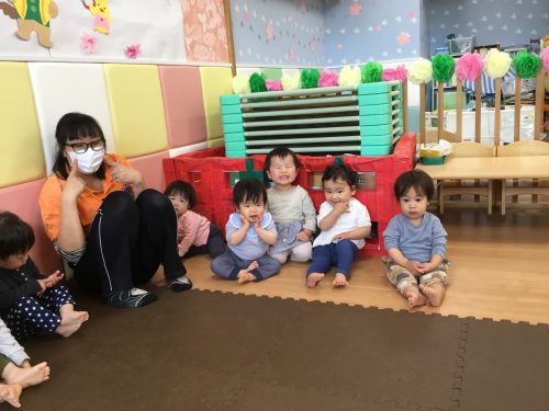 2022.04.06|おしらせ・イベント ?絵本読み聞かせプログラム? こんにちは! 絵本読み聞かせプログラムのブログの日がやってきました みんなが大好きな『おつきさまこんばんは』を読みました? お月様の表情を真似っこするみんなです? 「にこにこ」 絵本の後ろにある、「べー?」も上手です 前へ 次へ
