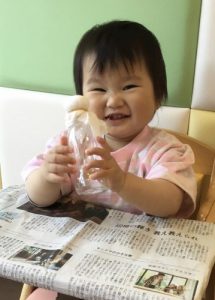 またドリンクの容器に綿やガーゼをつけて、たんぽのようにしたもので模様をつけました![]()