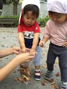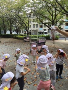 「それ!!」と落ち葉の雨を降らせて遊びました🍁