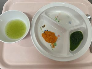 粥 野菜スープ にんじんのペースト 小松菜のペースト