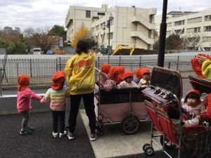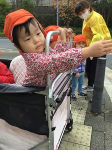 公園までの道では、保育者と一緒に安全確認中✨