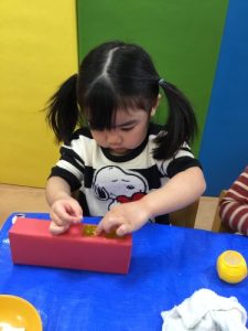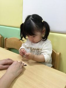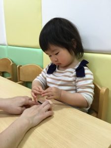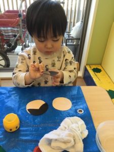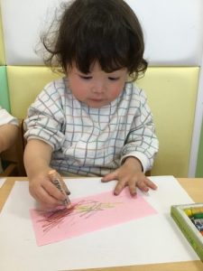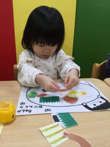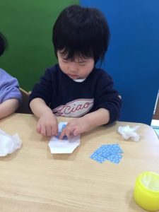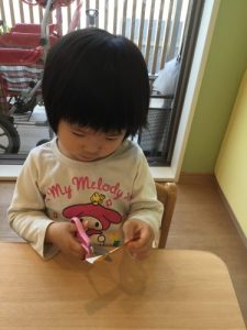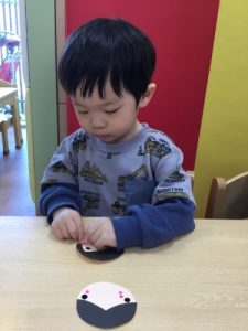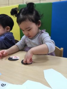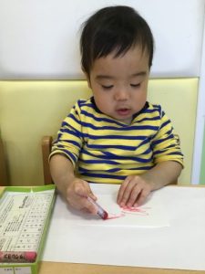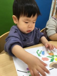 いちご組は、のりの製作が楽しかったようで、「もっとやりたい!」と言っていたので…違うプリントに挑戦!
