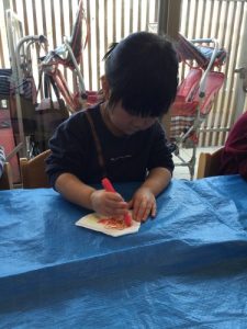 おひなさまやおだいりさまの着物の部分はにじみ絵に挑戦!
