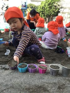 砂場では美味しそうなプリンがたくさんできていました🍮