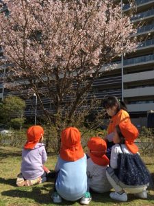 先日いつも行く公園ではきれいに桜が咲いていたので、みんなでお花見をしました✨