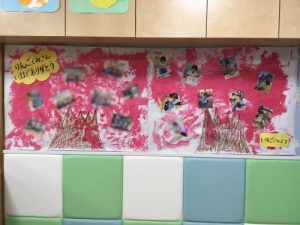 みんなで絵の具を塗り、大きな木になりました🌸