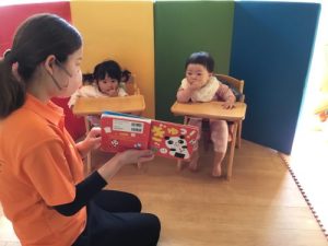 4月から保育園に入園したもも組のお友だちも絵本が始まると、興味津々な表情で見ていますよ💕
