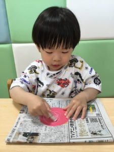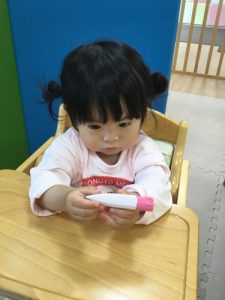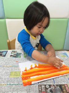 冷たい感触が楽しいようでニコニコ笑顔で取り組んでいました!