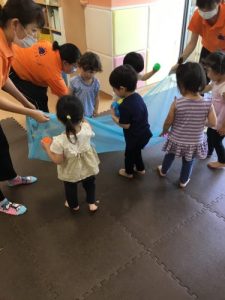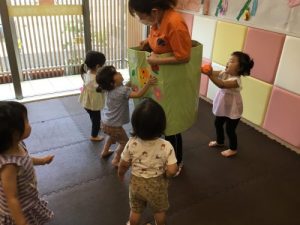 ハコハコかいじゅうめがけてボールを投げてみたり…楽しみました