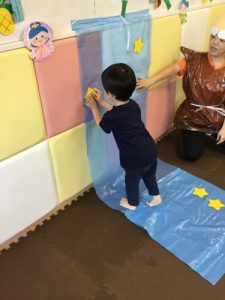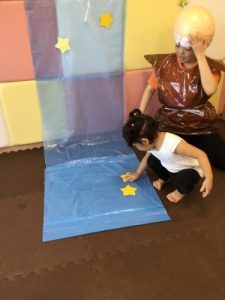 ゲームは色々なところに貼られた星をとってきて、真ん中の天の川に貼るというもの…
