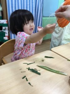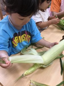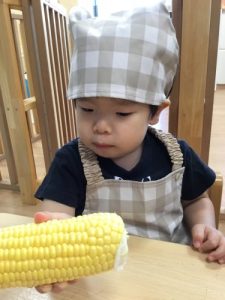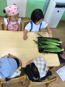 さて、今週は食育の一環として、『とうもろこし🌽』に触れてみました!