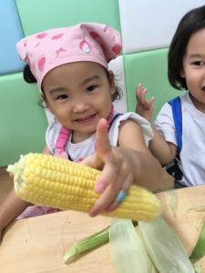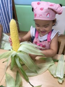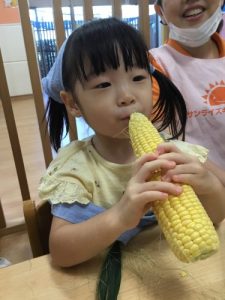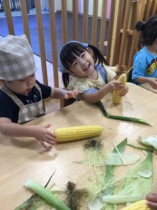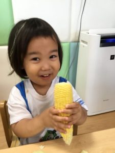 自分達で皮をむいたとうもろこしは、とても美味しかったようで、おやつの時には「甘いね❤️」と言いながら食べる子が多かったです🌽