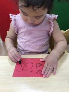 「私は赤いスイカ!丸をたくさん描いてみる🟡」
