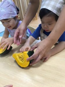 さて先日食育の一環として、『かぼちゃ』に触れました🎃