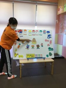 色々な動物や果物、キャラクターが登場するたびに、嬉しそうに声をあげながら見ていました!!