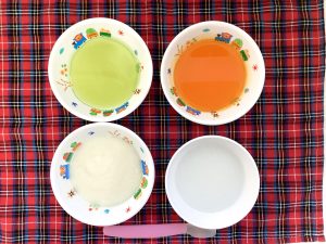 粥 豆腐のくず煮 キャベツペースト にんじんのペースト