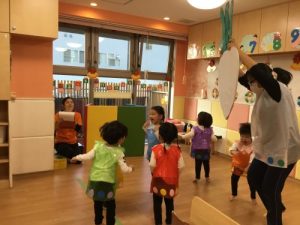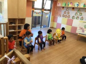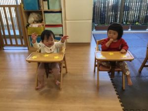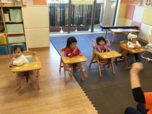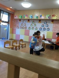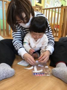 入場して保護者の方を見た瞬間、固まってしまう子が多かったのですが…少しずつ緊張がほぐれてきたようで、手を動かしていました❤️