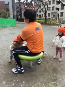 公園ではそれぞれが好きな遊びを見つけて楽しんでいます